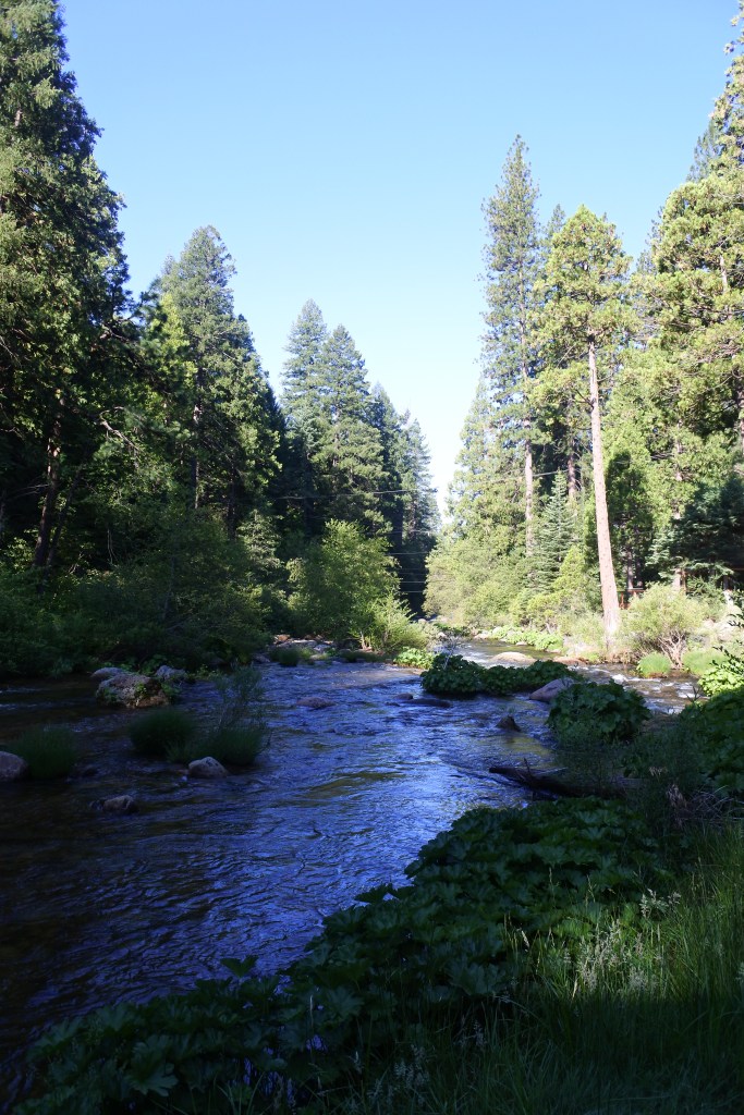 In the heat of the hectic afternoon and evening we did not take a lot of (any) photographs. But as prophesized yesterday, we would meet the American River again. I have a strange preference for rivers versus rocks and trees. Probably my religion is 5-10% animism. When I see a creek or a river, I always start to speculate and investigate where it comes from and where it is going. It is going somewhere. A large part of Silver Fork road followed the river and this morning I went out to cool my feet and enjoy the atmosphere outside Sierra Inn.