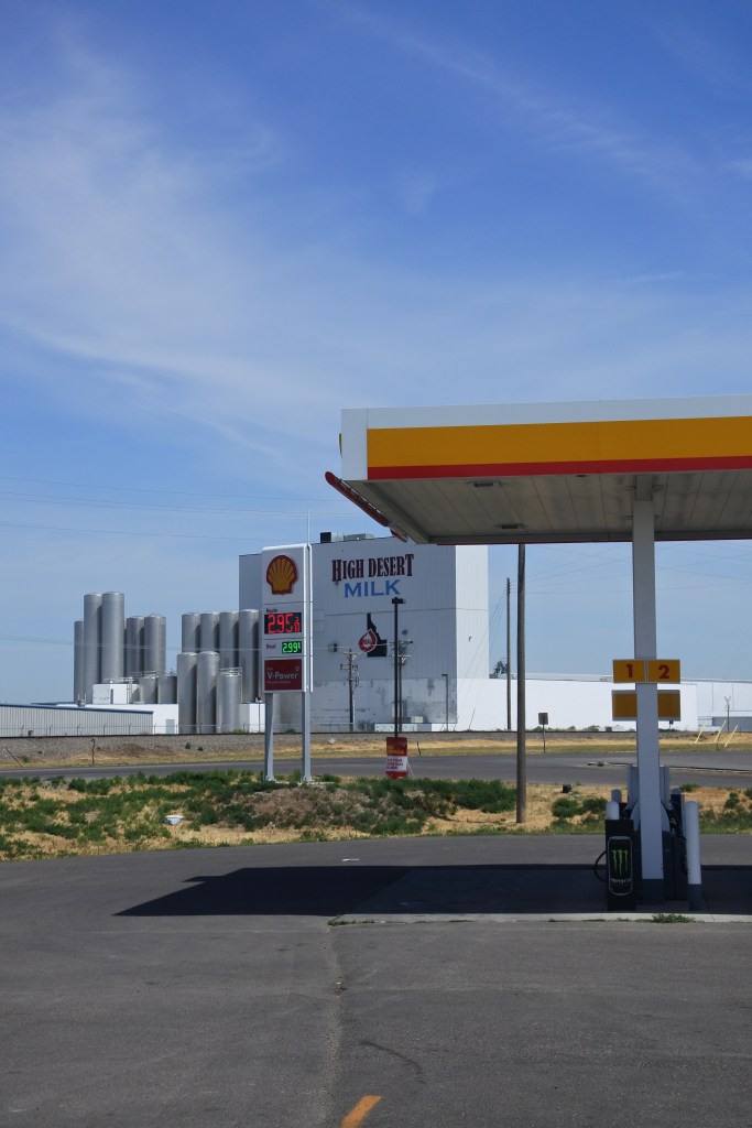 The state border was only up the hill from Jackpot and we had a beautiful morning tour. We see green irrigated fields, dairy farms and some of Arla Foods competitors are active in the area. Glanbia have an office in Twin Falls, we saw trucks from Agropur and in Burnley, where we had lunch, we saw Coors collecting barley for their beer and McCain potatoes for their fries.