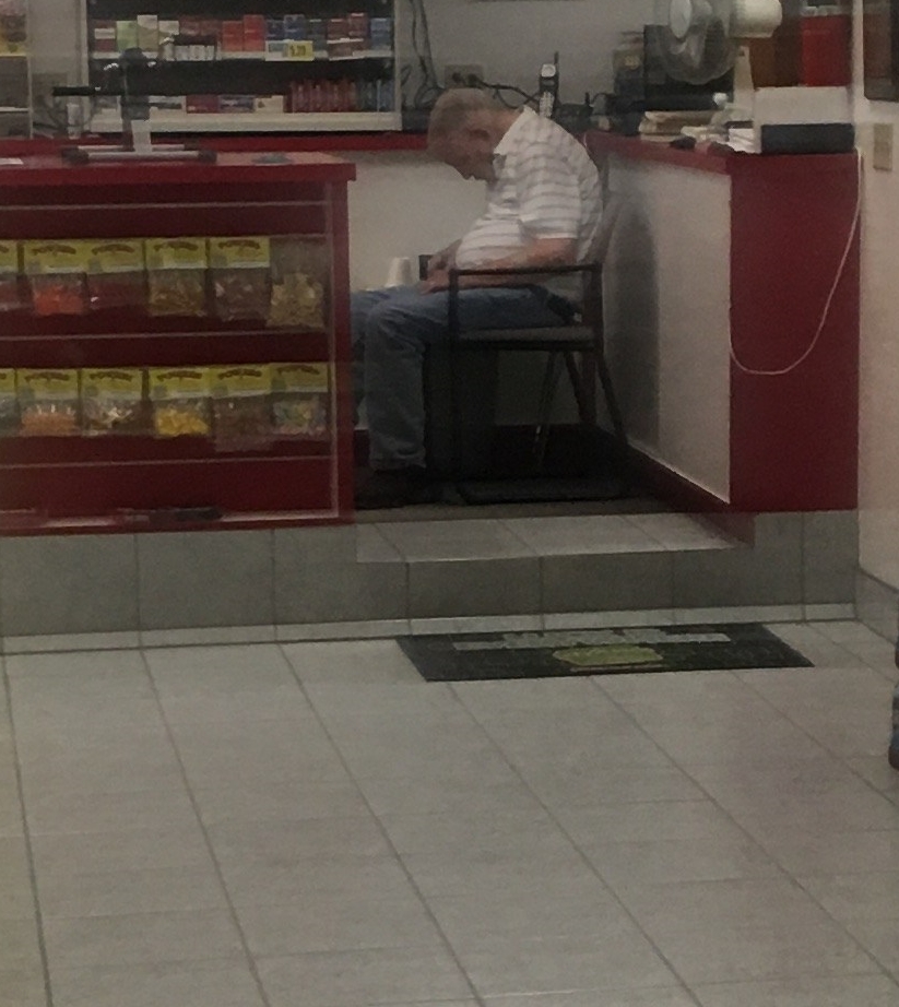 Our first 20 k break happened to be just outside a country store. We thought that we were going to replenish our drinks in Hollister down the road, but we could save some time by doing it here. I was my wallet day, so I entered the store and walked around without any other signs of life. Until I saw the salesman or owner sit on a chair fast asleep: