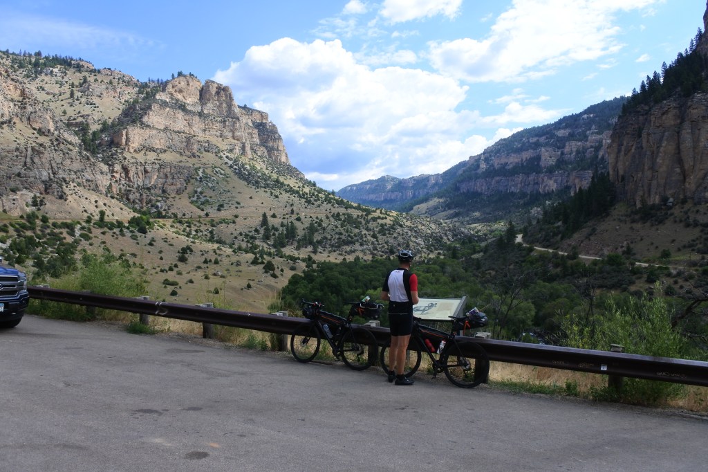 We received excellent attention from a State Trooper. The same trooper who stopped yesterday to ask if everything was alright stooped at a look out and asked about our progress and we got his advice with regards to riding on the Freeways here in Wyoming.
