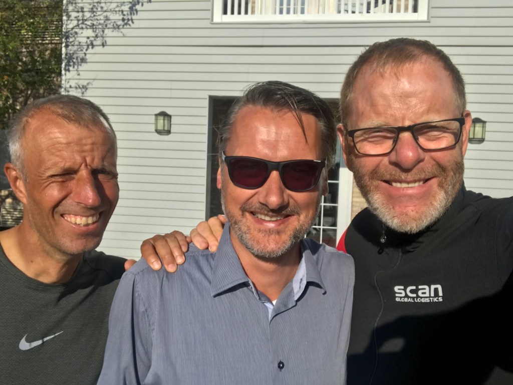 Jakob from Arla Foods Ingredients who is preparing the soil for our joint venture with Foremost Farms here in Wisconsin replenished our stock of whey protein hydrolysate by taking the trip from Madison to Dodgeville and have a cup of breakfast coffee with us. It was a little emotional to see a person from the old real world after so many days on the road in our small cocoon, and Jakob had even made three open rye bread sandwiches per person for our trip. With four small tomatoes per meal bag. He also in a very indiscrete way handed us two bags of whey protein hydrolysate in the breakfast room where we sat. Enough to serve a tour de France team, we left a little at the hotel and are now travelling with ample stock to carry us to New York.